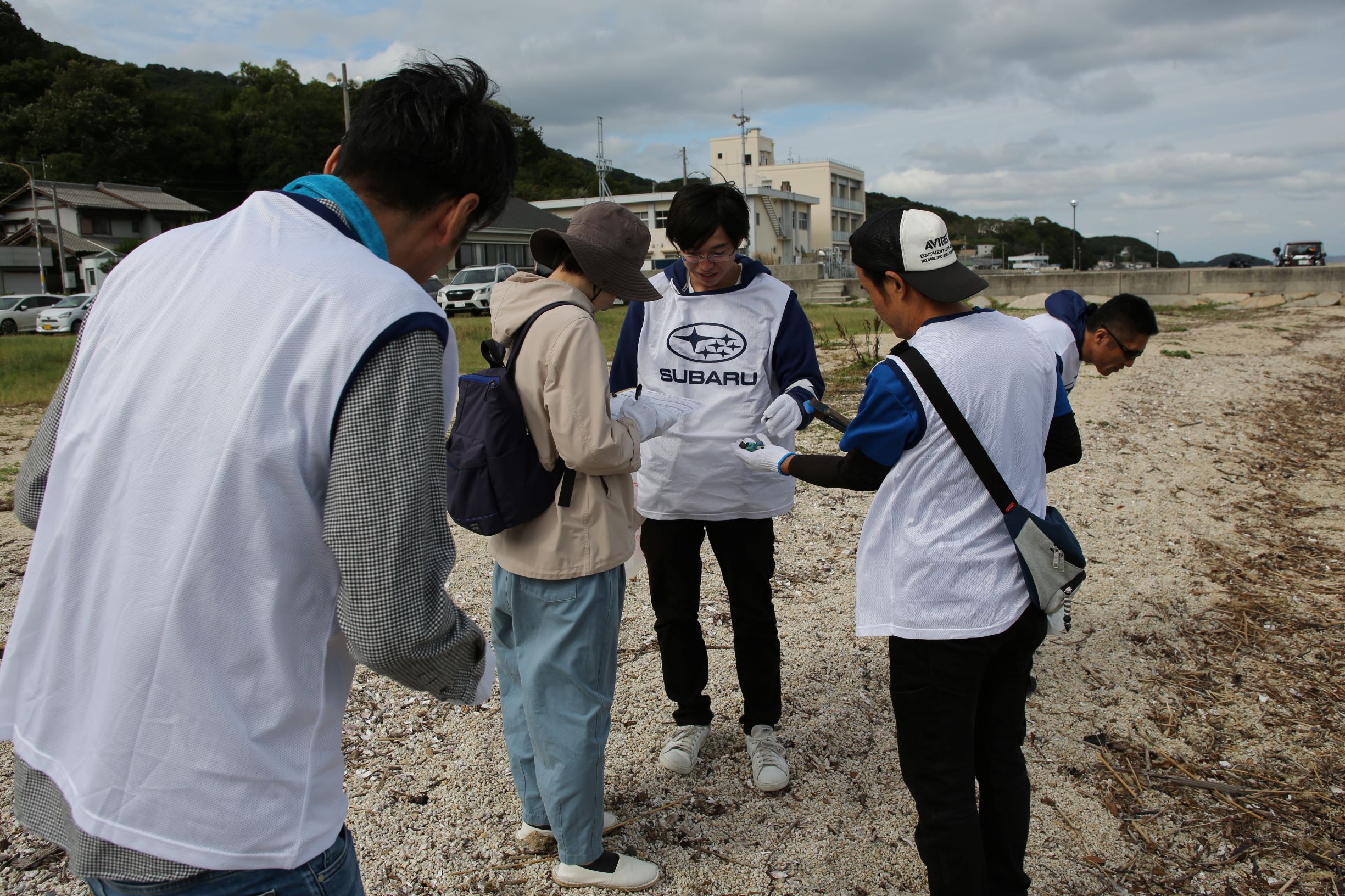 みんなでビーチに移動し、調査開始。定期的にビーチクリーンされている海岸ということもあり、大きなごみは少ないですが、よく探すとあちこちに小さなごみがあります。グループで和気あいあいと清掃活動している姿が印象的です。