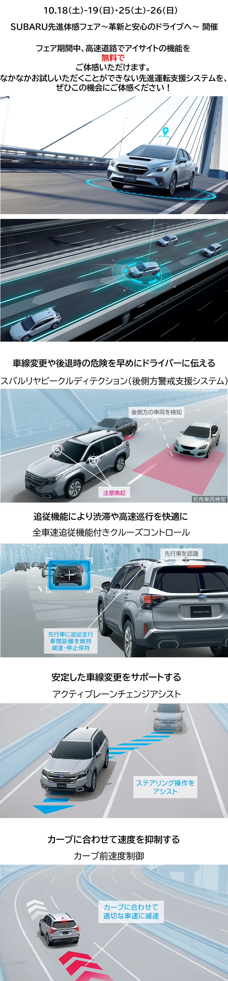 の4日間限定で、SUBARU先進体感フェアとして、高速道路でアイサイト機能を