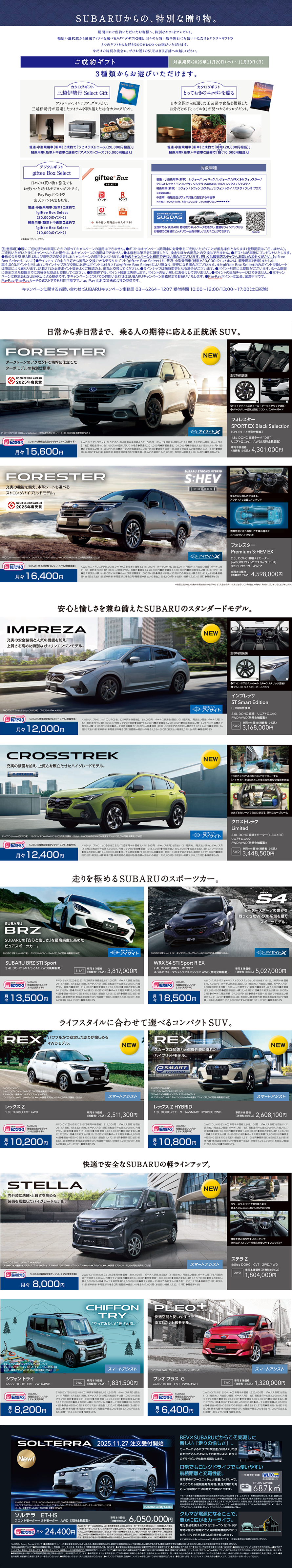 普通・小型乗用車(新車)ご成約で「Gift Box Select(20,000円相当)」