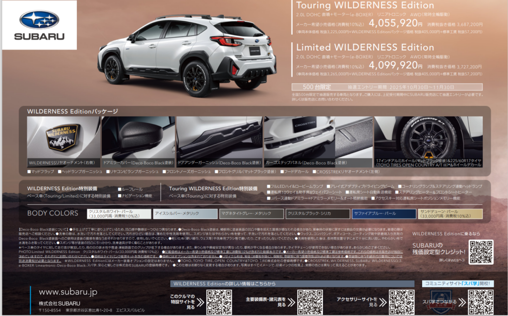 CROSSTREKにWILDERNESS Editionが発売されます。