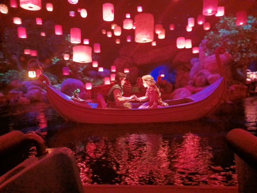 平日にもかかわらず相変わらずの混雑状況で、多くのアトラクションには乗れませんでしたが、そんな中でも特に良かったアトラクションが、ラプンツェルのランタンフェスティバルです![]()