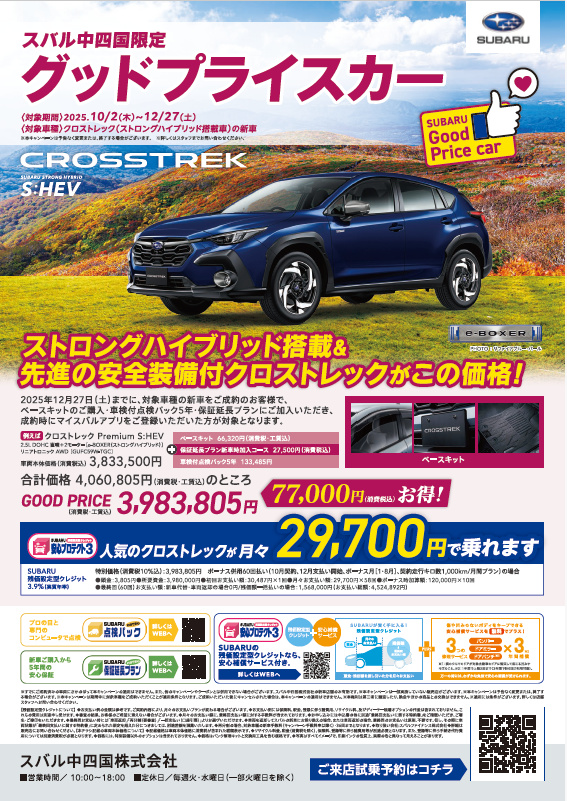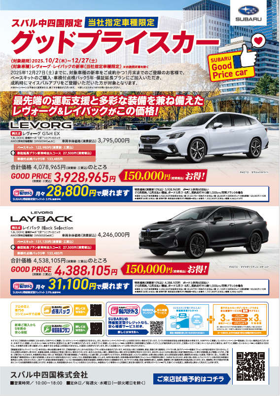 人気のLEVORG&RAYBACKとCROSSTREKにお買い得設定車がございます。