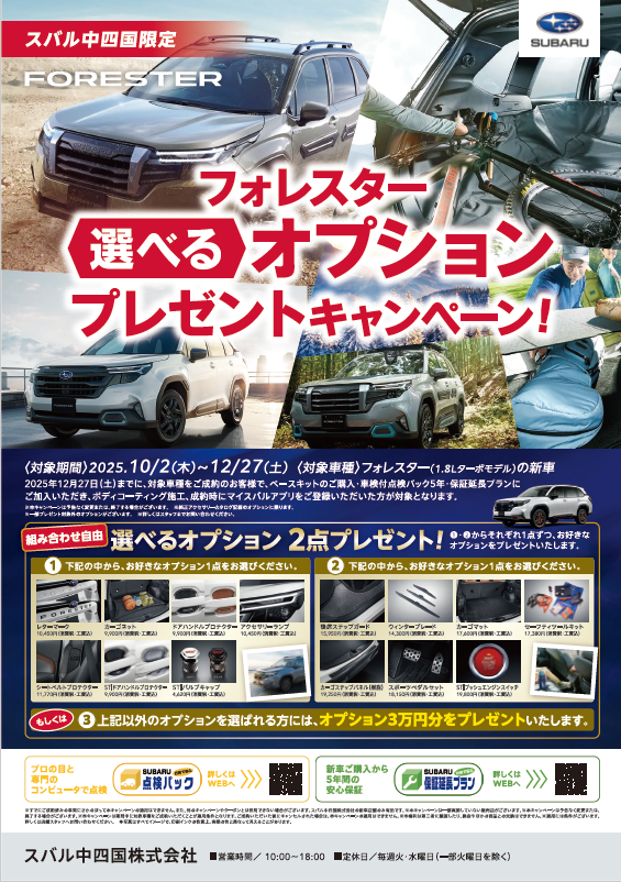 12月27日までにご契約の方へ【選べるオプションプレゼント】キャンペーンを実施中です