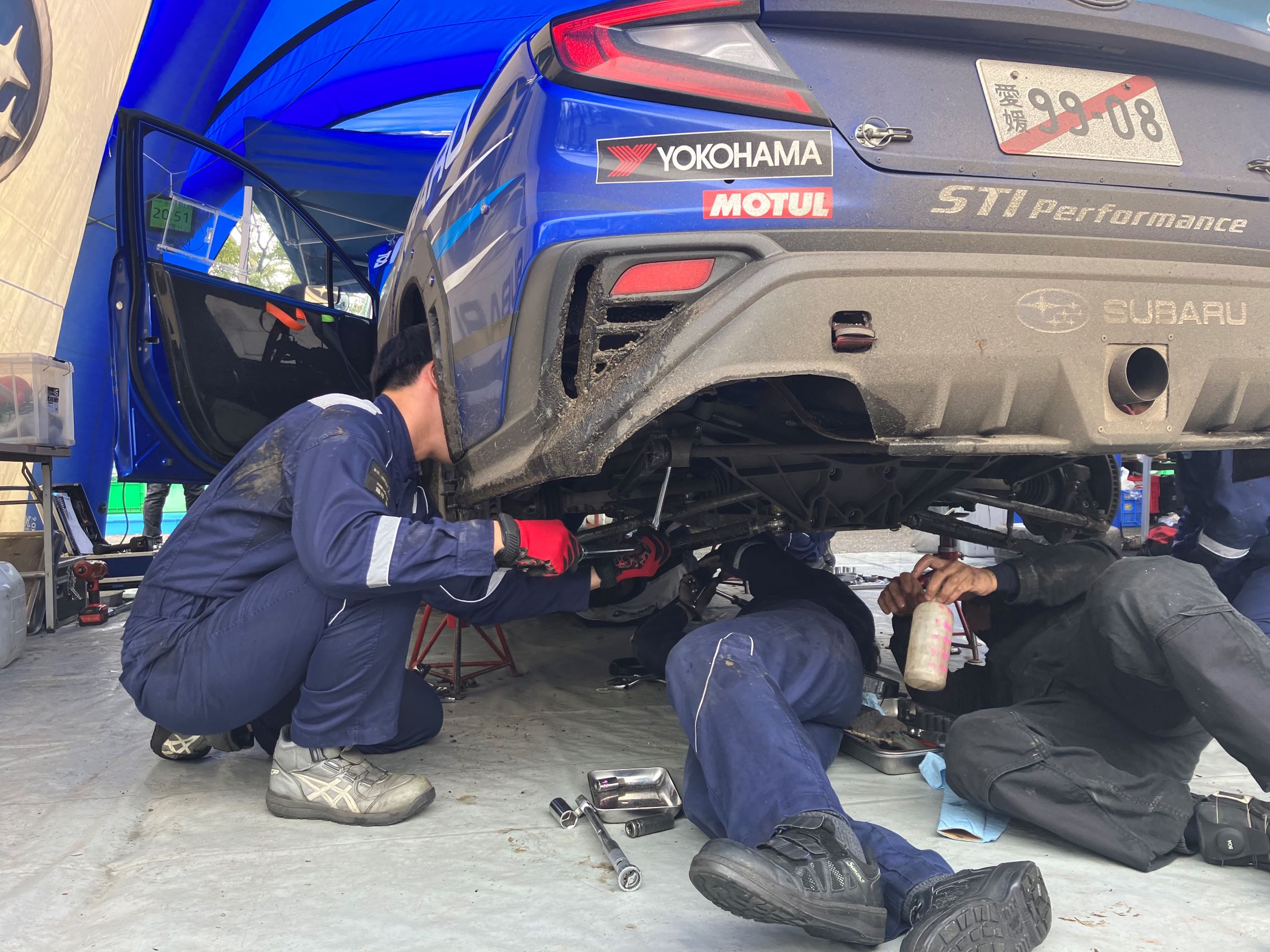 ↑この右下で車両下側に潜り込んで作業しているのが井上です!!
