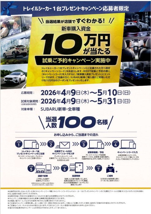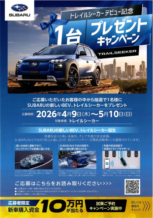 そして、今TRAILSEEKERが当たる『トレイルシーカーデビュー記念1台プレゼントキャンペーン』をしています