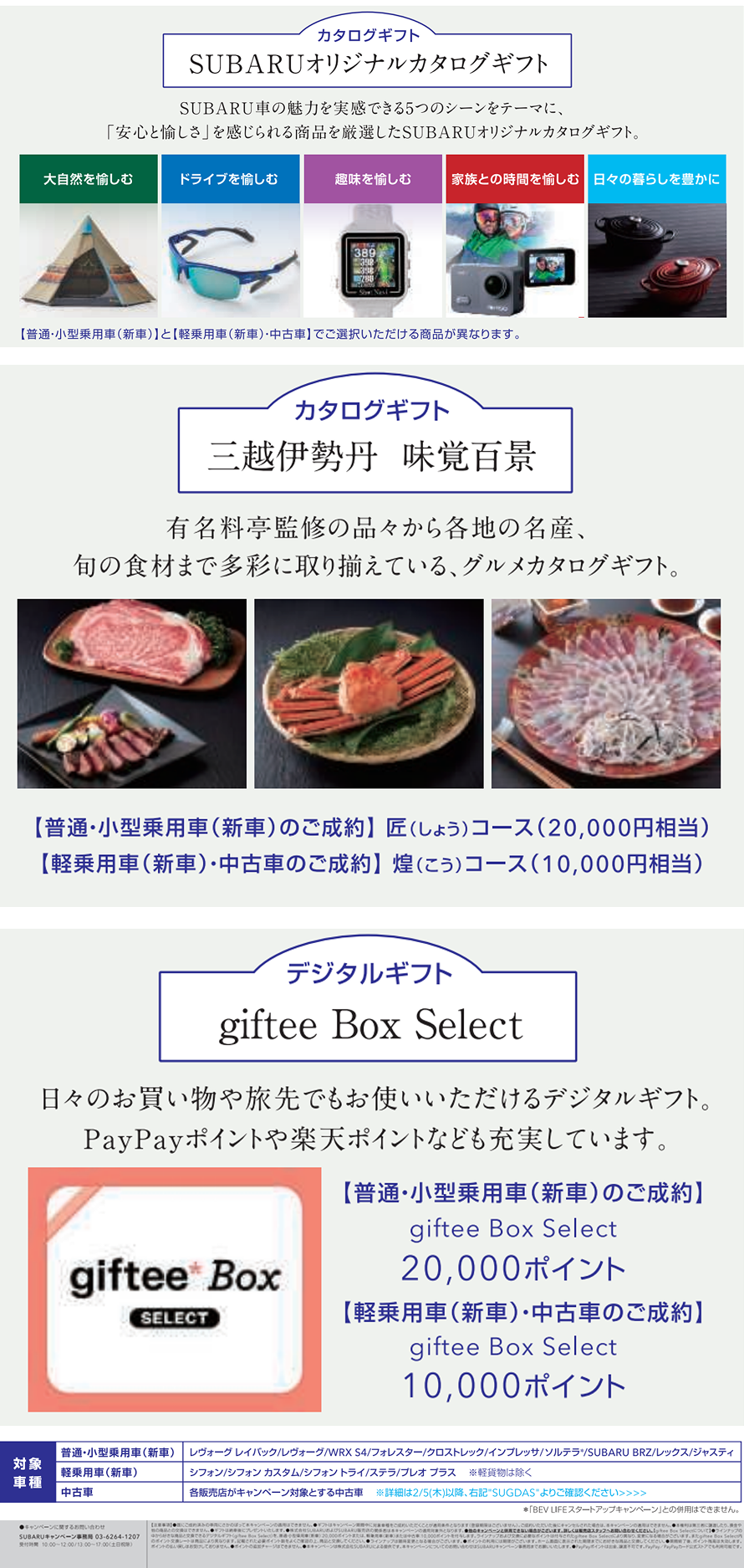 期間中、お車のご成約でSUBARUオリジナルカタログギフト、